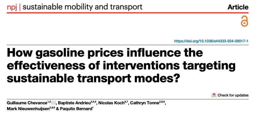 Avec une belle équipe interdisciplinaire, nous nous sommes intéressés au rôle du prix de l’essence dans l’efficacité des interventions visant un report modal de la voiture vers des modes de transport actifs et publics.